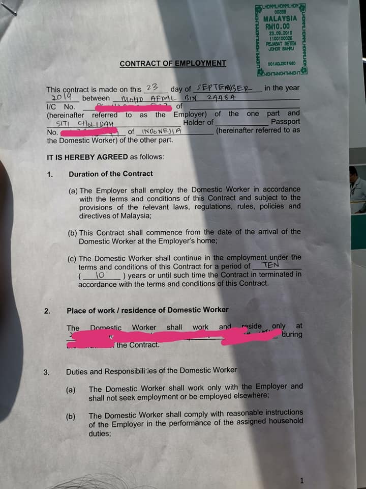 Contract of employment (yang ni saya dah buat siap siap masa tunggu result FOMEMA, download borang, google dalam website imigresen, contract of employement, isi dan pergi mati setem rm10 kat LHDN.