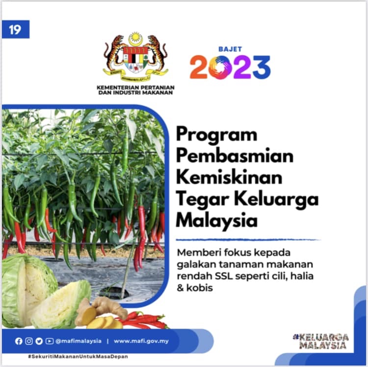 Tuntutan Keselamatan makanan (Food Security) juga telah dipenuhi dengan baik. Kerajaan menambah bantuan tunai kepada nelayan, bantuan musim tengkujuh kepada pekebun kecil dan bantuan sara diri kepada pesawah padi.