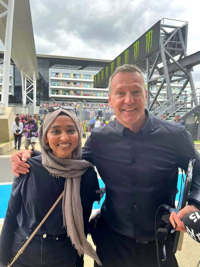 Simon Crafar pengulas MotoGP melahirkan rasa kagum dan hormat yang tinggi pada gadis muda ini.. “Saya merasa bertuah dapat bertemu wanita muda yang hebat di Silverstone ini”