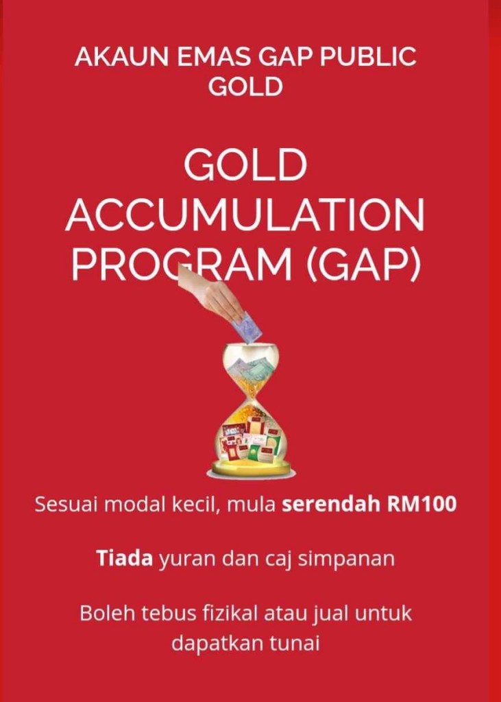 Public Gold menyediakan peluang serta kemudahan yang sangat menarik untuk semua sesiapa yang mahu menyimpan emas dengan konsisten.Pada masa yang sama kemudahan yang disediakan oleh Public Gold sangat mesra dan mudah buat semua.