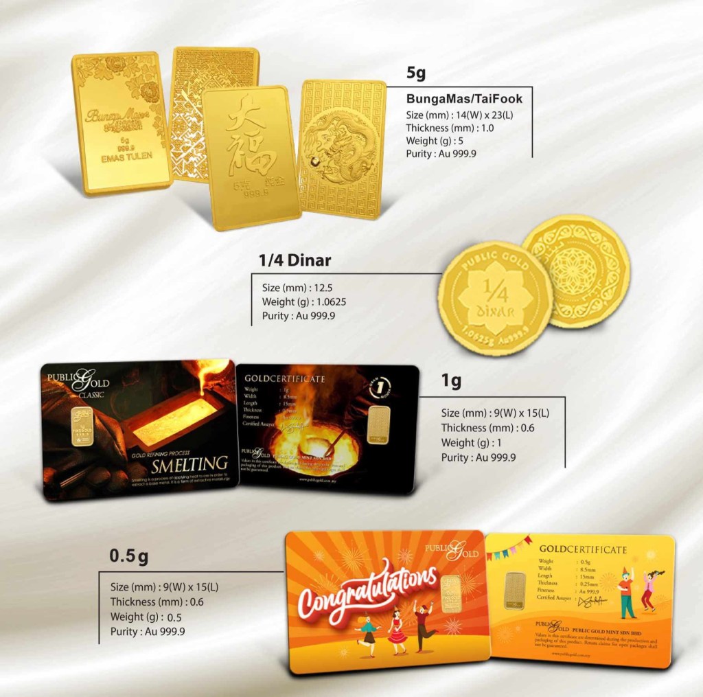 Terdapat beraneka jenis pilihan emas daripada Public Gold dan banyak kelebihan menyimpan emas di Public Gold daripada kecil kecilan sehinggalah sebesar besarnya simpanan emas.