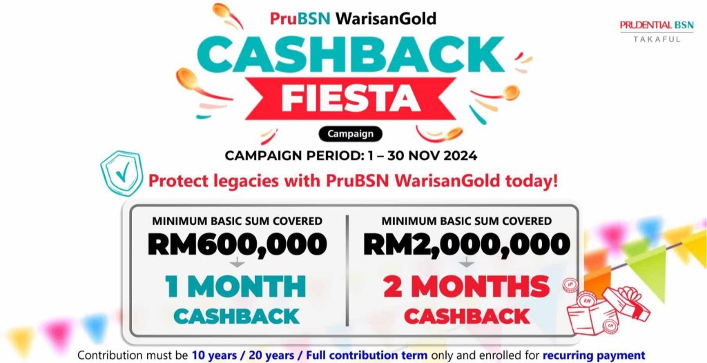 Kepada semua rakyat Malaysia! Pelbagai tawaran yang menarik daripada prubsn pada bulan november 2024 ini. Sebagai sebahagian daripada usaha berterusan untuk menyediakan perlindungan takaful yang mencukupi untuk setiap keluarga di Malaysia, dengan sukacitanya kempen Prubsn Warisan Gold Cashback Fiesta dilancarkan kepada rakyat Malaysia. Bermula 1 November 2024 – 30 November 2024 1: Jumlah perlindungan asas…